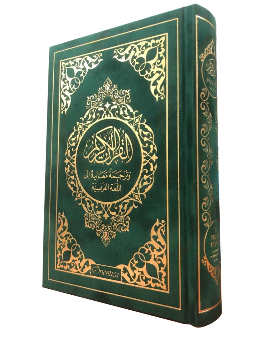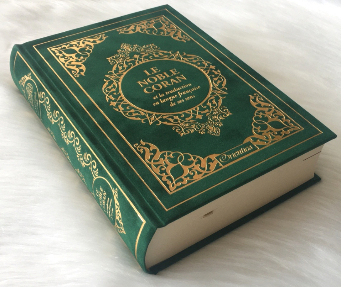 Le Noble Coran et la traduction en langue française de ses sens (bilingue français/arabe) – Edition de luxe couverture cartonnée en daim couleur Vert dorée