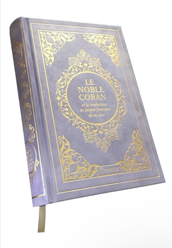 Le Noble Coran et la traduction en langue française de ses sens (Index des sourates sur le côté) – Edition de luxe couverture cartonnée en daim couleur Mauve dorée