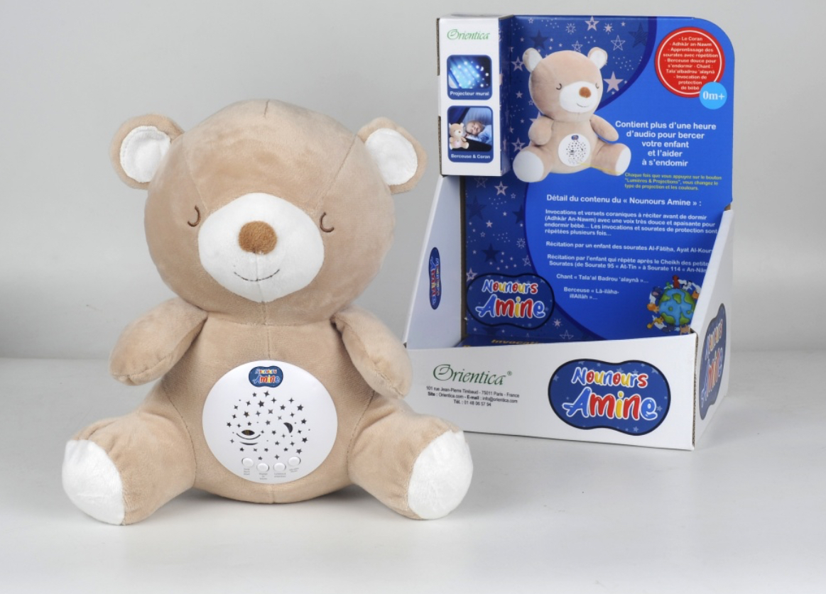 Nounours Amine : Doudou Ourson et Veilleuse Coranique pour enfant musulman et bébé